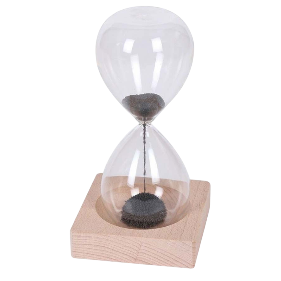 This elegant & glamorous magnetic sand timer/ hourglass with wooden base is the perfect accessory for your home decor or house-warming gift.