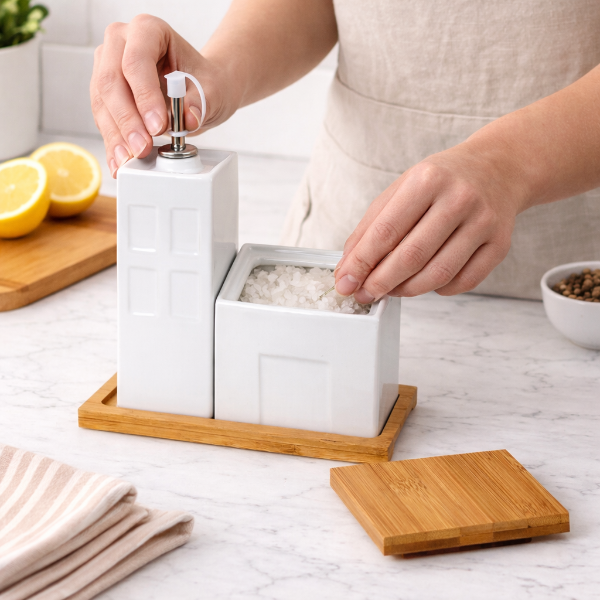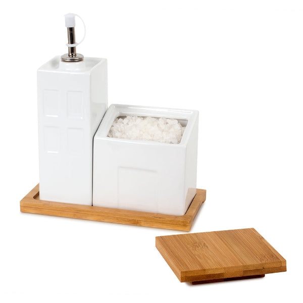 Inspired by a quaint cityscape, this unique piece neatly stores your salt and condiments while adding a decorative touch to your countertop or dining table. Crafted from durable ceramic with natural bamboo accents, it keeps contents fresh and protected from moisture, while remaining easy to clean and maintain. Compact and space-saving, it’s perfect for everyday cooking or entertaining, offering both functionality and a distinctive design that’s sure to spark conversation.